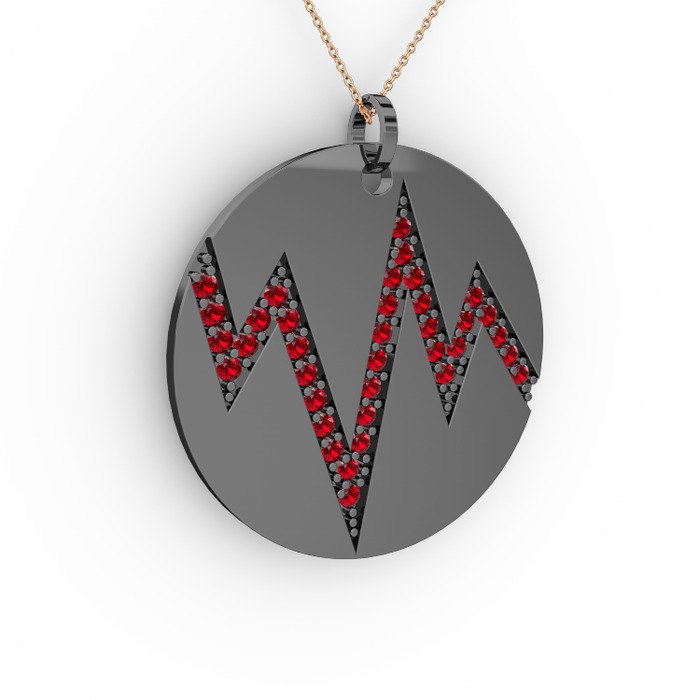 Garnet 925 ayar siyah rodyum kaplama gümüş kolye (40 cm rose altın rolo zincir)