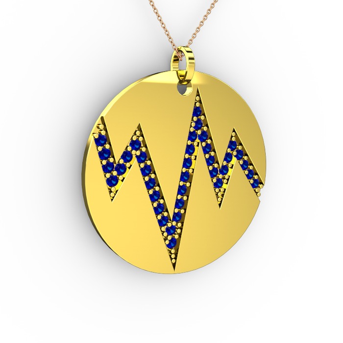 Lab safir 14 ayar altın kolye (40 cm rose altın rolo zincir)