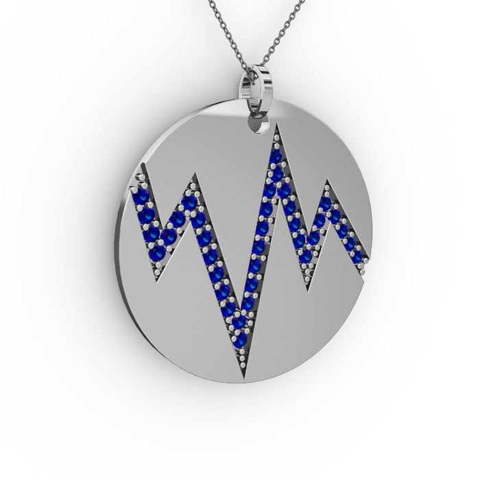 Lab safir 18 ayar beyaz altın kolye (40 cm gümüş rolo zincir)