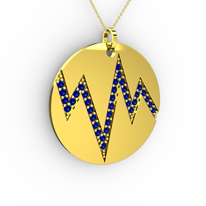 Lab safir 925 ayar altın kaplama gümüş kolye (40 cm altın rolo zincir)