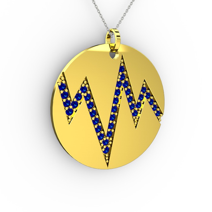 Lab safir 925 ayar altın kaplama gümüş kolye (40 cm gümüş rolo zincir)