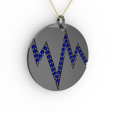 Lab safir 925 ayar siyah rodyum kaplama gümüş kolye (40 cm altın rolo zincir)