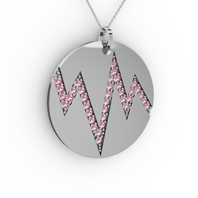 Pembe kuvars 14 ayar beyaz altın kolye (40 cm beyaz altın rolo zincir)