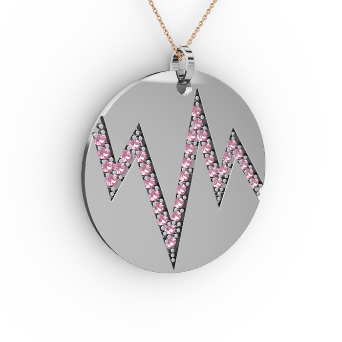 Pembe kuvars 14 ayar beyaz altın kolye (40 cm rose altın rolo zincir)