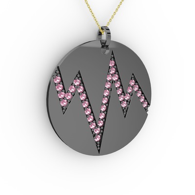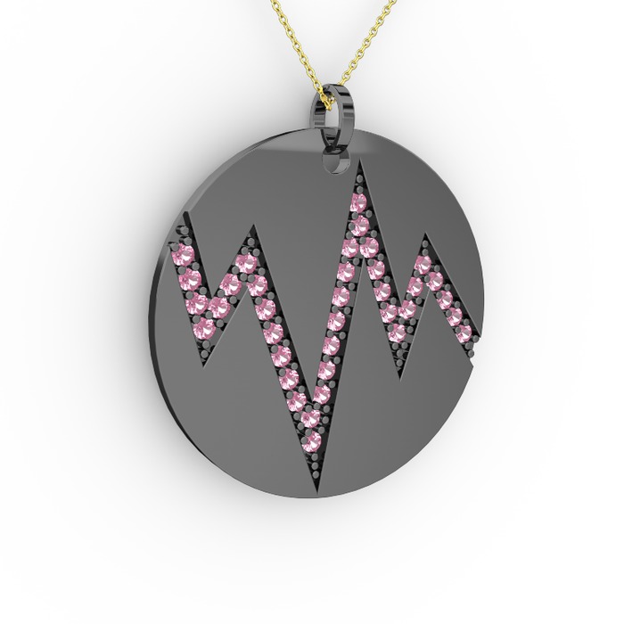 Pembe kuvars 925 ayar siyah rodyum kaplama gümüş kolye (40 cm altın rolo zincir)