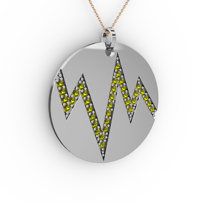 Peridot 18 ayar beyaz altın kolye (40 cm rose altın rolo zincir)