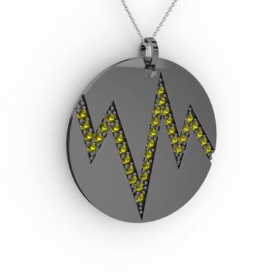 Peridot 925 ayar siyah rodyum kaplama gümüş kolye (40 cm beyaz altın rolo zincir)