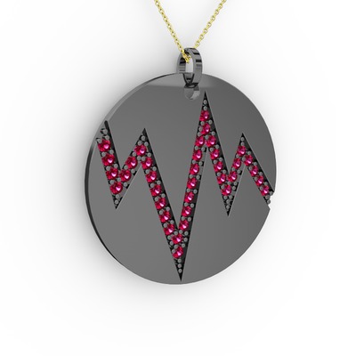 Rodolit garnet 925 ayar siyah rodyum kaplama gümüş kolye (40 cm altın rolo zincir)