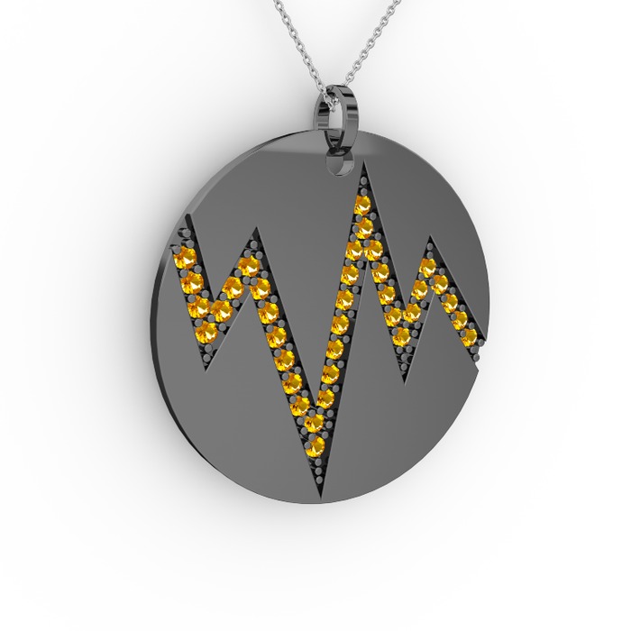 Sitrin 925 ayar siyah rodyum kaplama gümüş kolye (40 cm gümüş rolo zincir)