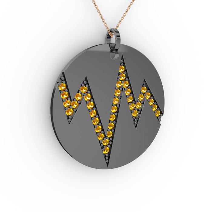 Sitrin 925 ayar siyah rodyum kaplama gümüş kolye (40 cm rose altın rolo zincir)