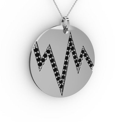 Siyah zirkon 14 ayar beyaz altın kolye (40 cm gümüş rolo zincir)