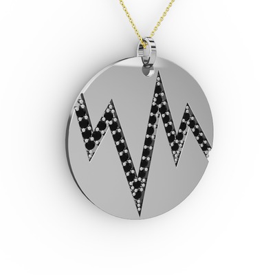 Siyah zirkon 14 ayar beyaz altın kolye (40 cm gümüş rolo zincir)