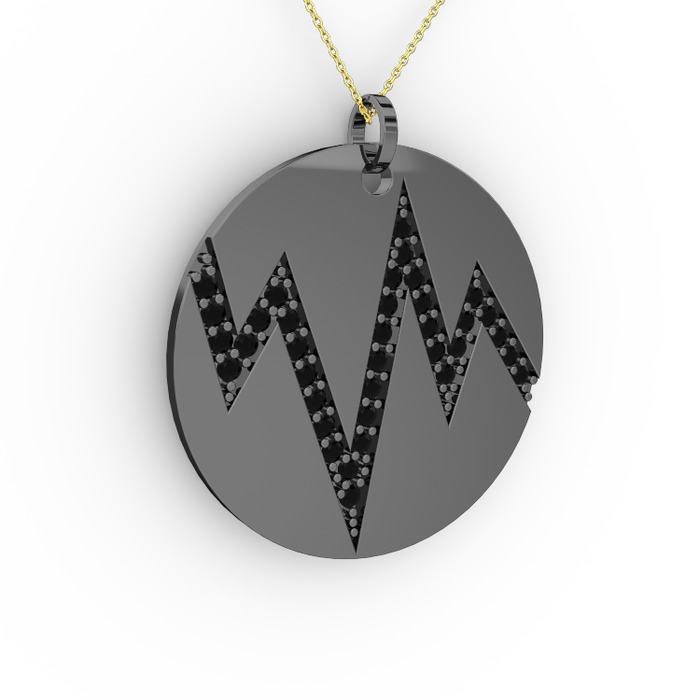 Siyah zirkon 925 ayar siyah rodyum kaplama gümüş kolye (40 cm altın rolo zincir)