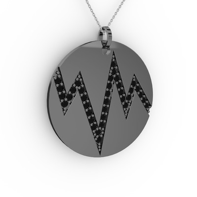 Siyah zirkon 925 ayar siyah rodyum kaplama gümüş kolye (40 cm beyaz altın rolo zincir)