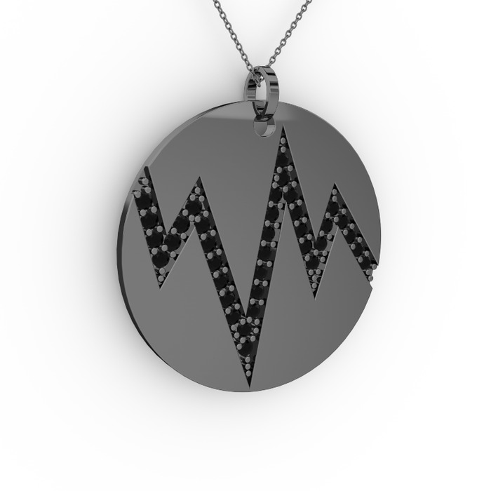 Siyah zirkon 925 ayar siyah rodyum kaplama gümüş kolye (40 cm gümüş rolo zincir)
