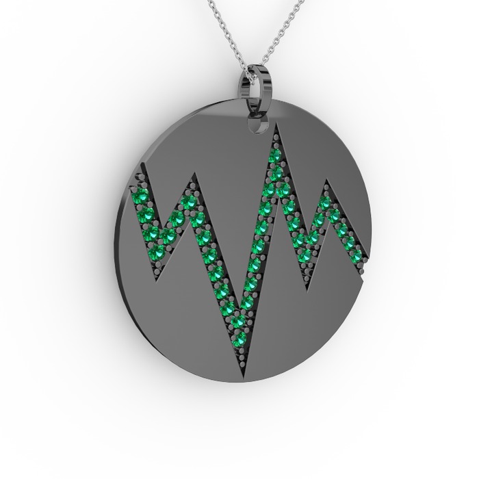Yeşil kuvars 925 ayar siyah rodyum kaplama gümüş kolye (40 cm gümüş rolo zincir)