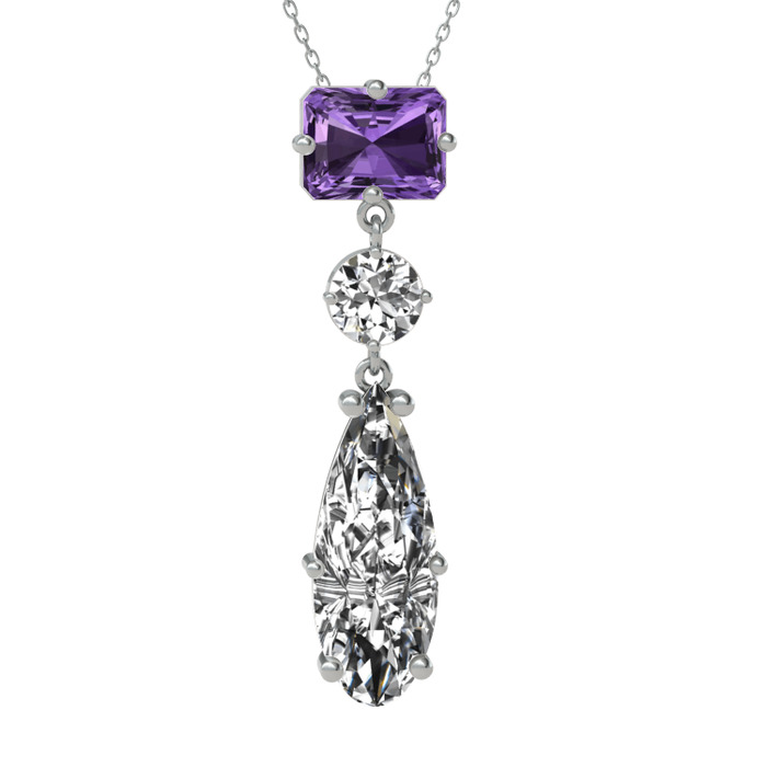 Ametist ve beyaz zirkon 925 ayar gümüş kolye (40 cm gümüş rolo zincir)