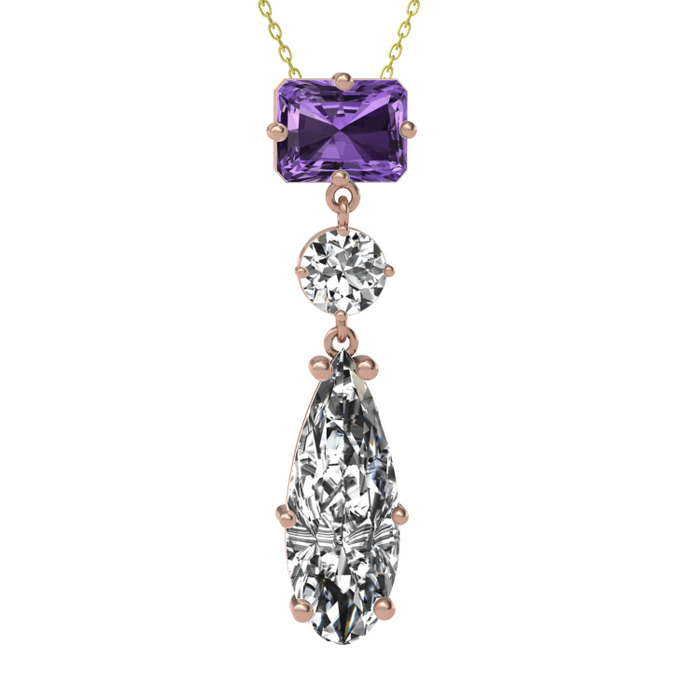 Ametist ve beyaz zirkon 925 ayar rose altın kaplama gümüş kolye (40 cm altın rolo zincir)