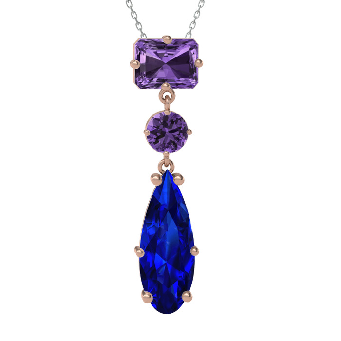 Ametist ve lab safir 14 ayar rose altın kolye (40 cm beyaz altın rolo zincir)