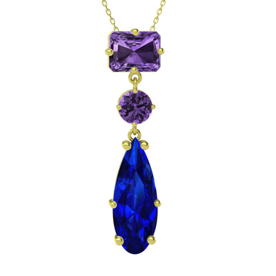 Ametist ve lab safir 925 ayar altın kaplama gümüş kolye (40 cm gümüş rolo zincir)