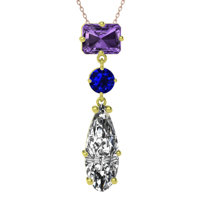 Ametist, lab safir ve beyaz zirkon 18 ayar altın kolye (40 cm rose altın rolo zincir)