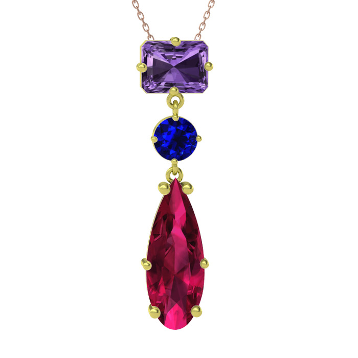 Ametist, lab safir ve rodolit garnet 18 ayar altın kolye (40 cm gümüş rolo zincir)