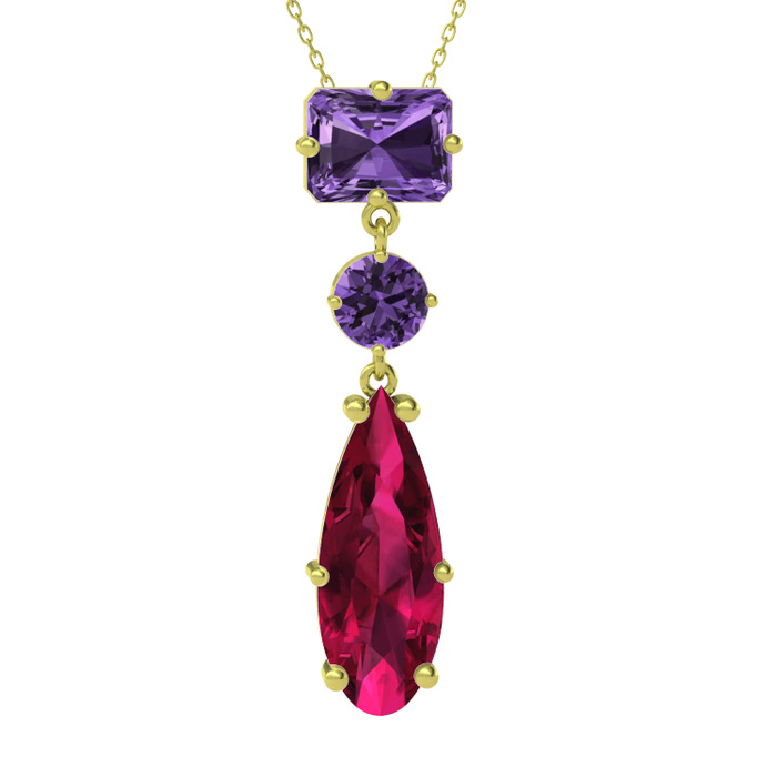 Ametist ve rodolit garnet 14 ayar altın kolye (40 cm gümüş rolo zincir)