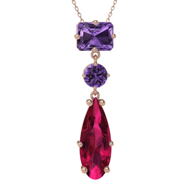 Ametist ve rodolit garnet 925 ayar rose altın kaplama gümüş kolye (40 cm gümüş rolo zincir)