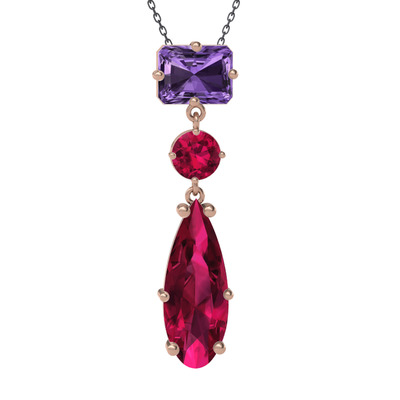 Ametist ve rodolit garnet 925 ayar rose altın kaplama gümüş kolye (40 cm gümüş rolo zincir)