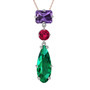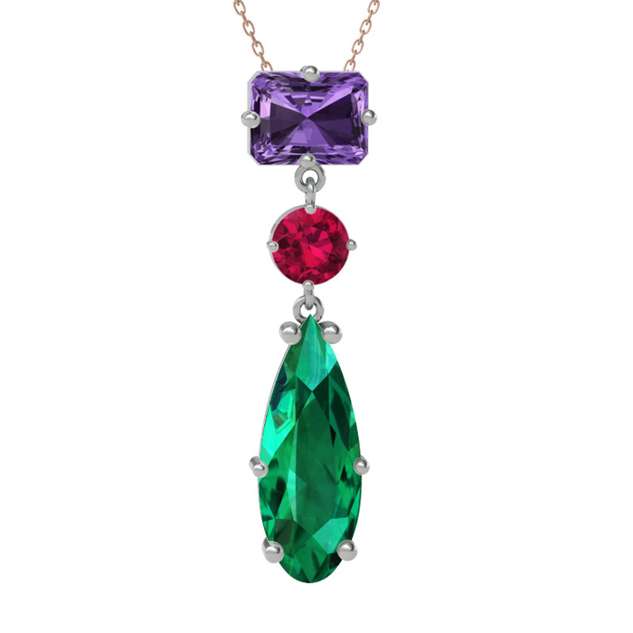 Ametist, rodolit garnet ve yeşil kuvars 8 ayar beyaz altın kolye (40 cm rose altın rolo zincir)
