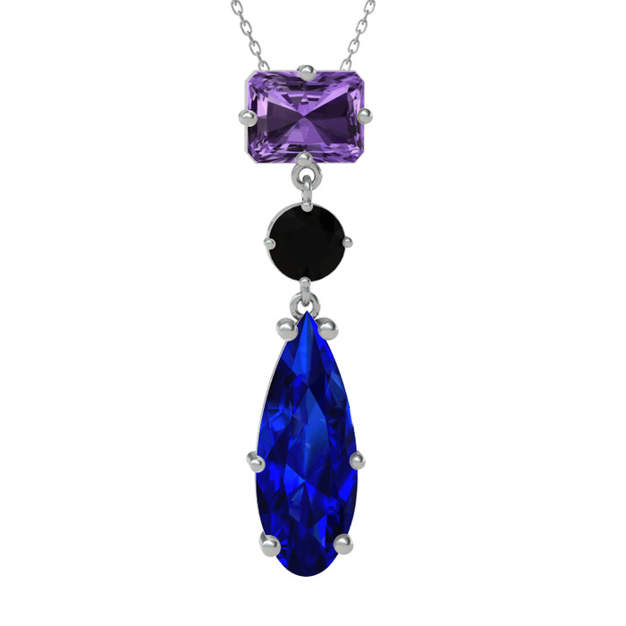 Ametist, siyah zirkon ve lab safir 14 ayar beyaz altın kolye (40 cm gümüş rolo zincir)