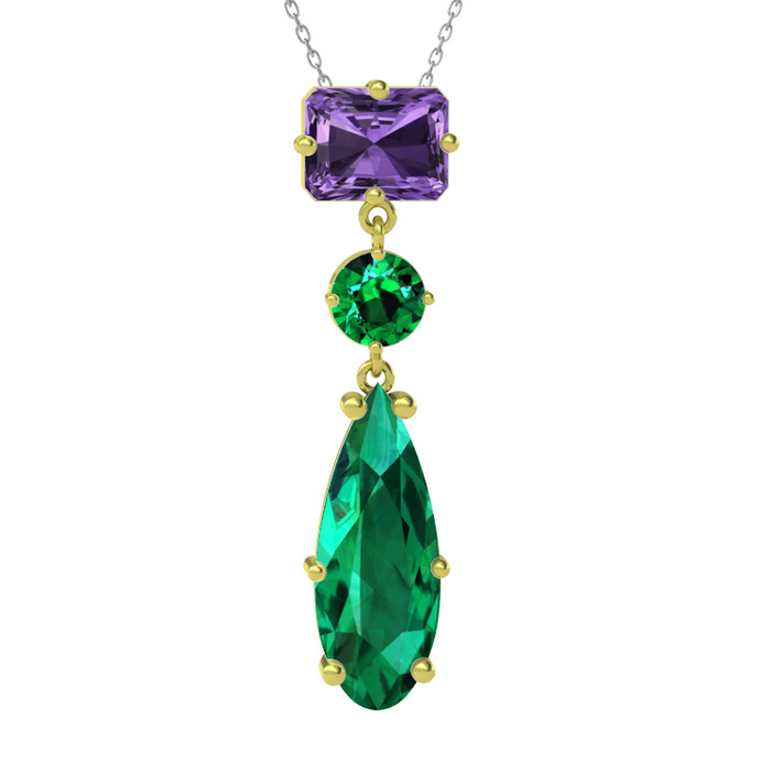 Ametist ve yeşil kuvars 8 ayar altın kolye (40 cm gümüş rolo zincir)