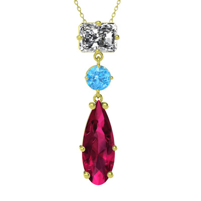 Beyaz zirkon, akuamarin ve rodolit garnet 8 ayar altın kolye (40 cm altın rolo zincir)