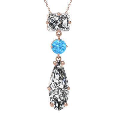 Beyaz zirkon ve akuamarin 925 ayar rose altın kaplama gümüş kolye (40 cm gümüş rolo zincir)