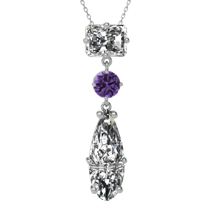 Beyaz zirkon ve ametist 18 ayar beyaz altın kolye (40 cm gümüş rolo zincir)