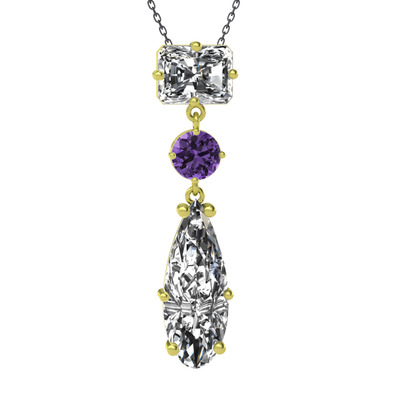 Beyaz zirkon ve ametist 925 ayar altın kaplama gümüş kolye (40 cm gümüş rolo zincir)