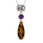 Beyaz zirkon, ametist ve dumanlı kuvars 925 ayar rose altın kaplama gümüş kolye (40 cm gümüş rolo zincir)