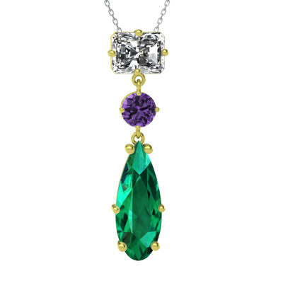 Beyaz zirkon, ametist ve yeşil kuvars 8 ayar altın kolye (40 cm gümüş rolo zincir)