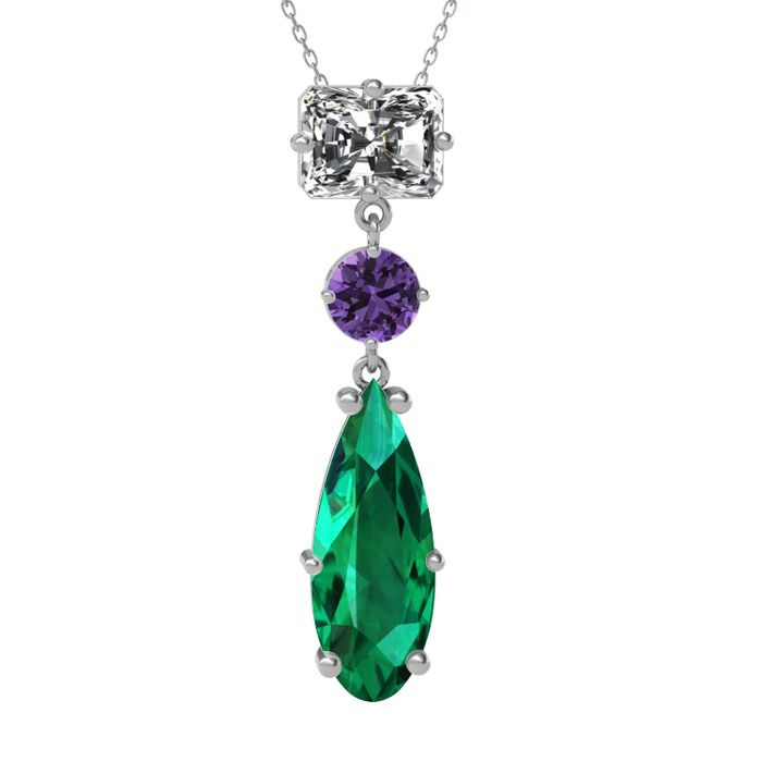 Beyaz zirkon, ametist ve yeşil kuvars 8 ayar beyaz altın kolye (40 cm beyaz altın rolo zincir)