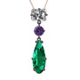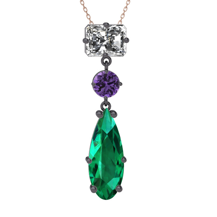Beyaz zirkon, ametist ve yeşil kuvars 925 ayar siyah rodyum kaplama gümüş kolye (40 cm rose altın rolo zincir)