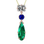 Beyaz zirkon, lab safir ve yeşil kuvars 925 ayar rose altın kaplama gümüş kolye (40 cm altın rolo zincir)