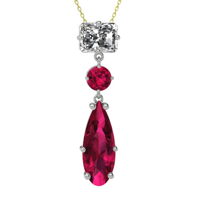 Beyaz zirkon ve rodolit garnet 8 ayar beyaz altın kolye (40 cm altın rolo zincir)