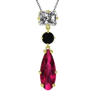 Beyaz zirkon, siyah zirkon ve rodolit garnet 925 ayar altın kaplama gümüş kolye (40 cm gümüş rolo zincir)