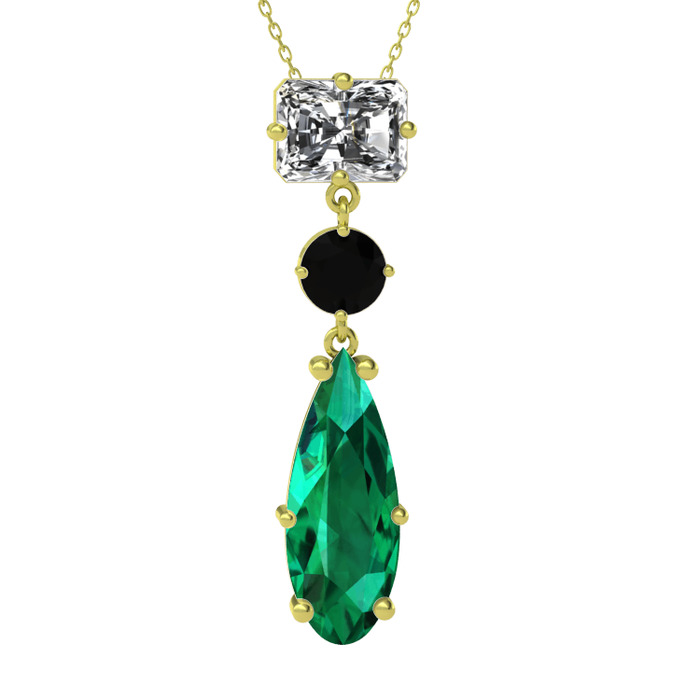 Beyaz zirkon, siyah zirkon ve yeşil kuvars 14 ayar altın kolye (40 cm altın rolo zincir)