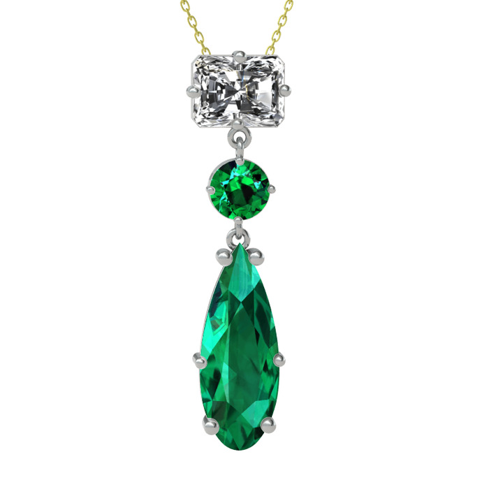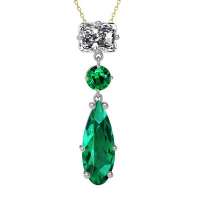 Beyaz zirkon ve yeşil kuvars 18 ayar beyaz altın kolye (40 cm gümüş rolo zincir)