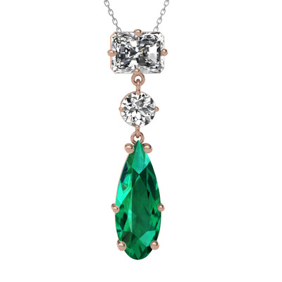 Beyaz zirkon ve yeşil kuvars 18 ayar rose altın kolye (40 cm gümüş rolo zincir)