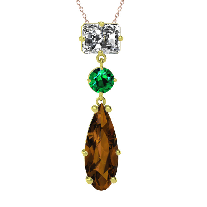 Beyaz zirkon, yeşil kuvars ve dumanlı kuvars 8 ayar altın kolye (40 cm rose altın rolo zincir)
