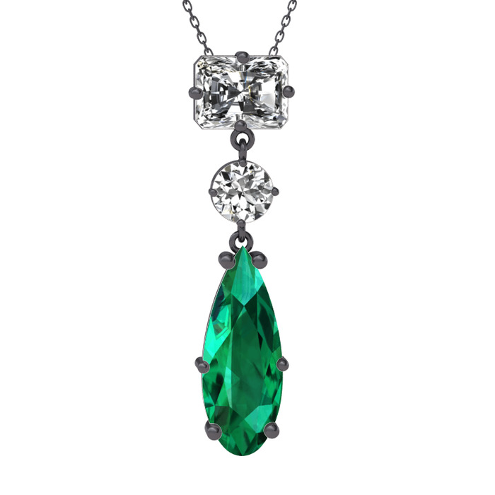Beyaz zirkon ve yeşil kuvars 925 ayar siyah rodyum kaplama gümüş kolye (40 cm gümüş rolo zincir)