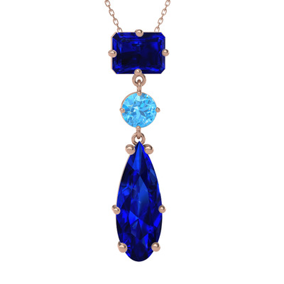 Lab safir ve akuamarin 14 ayar rose altın kolye (40 cm rose altın rolo zincir)