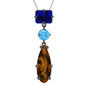 Lab safir, akuamarin ve dumanlı kuvars 925 ayar siyah rodyum kaplama gümüş kolye (40 cm rose altın rolo zincir)